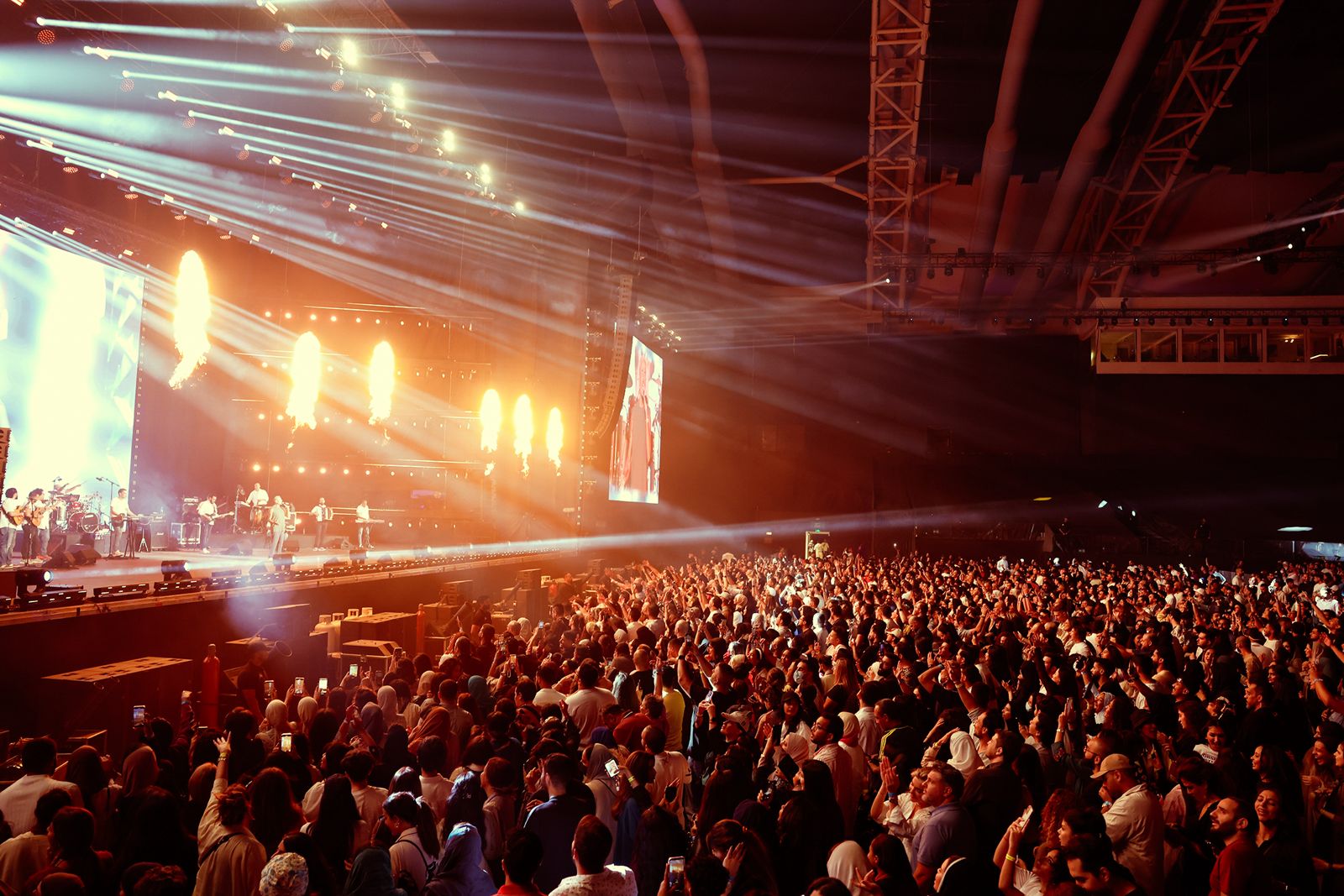وغنى عمرو دياب مجموعة من أشهر أغانيه التي يتفاعل معها الجمهور، حيث افتتحها بأغنيته يا أنا يا لأ وتوالت الأغاني وسط تفاعل الجمهور مثل بحبه، برج الحوت، أنت الحظ، وياه-، ده لو اتساب، يا قمر، ميدلي يجمع بين اغنيتين الكلمة الحلوة وشكرا من هنا لبكرة، تملي معاك، يتعلموا، هتتدلع، قمرين، نور العين، ليلي نهاري، العالم الله.