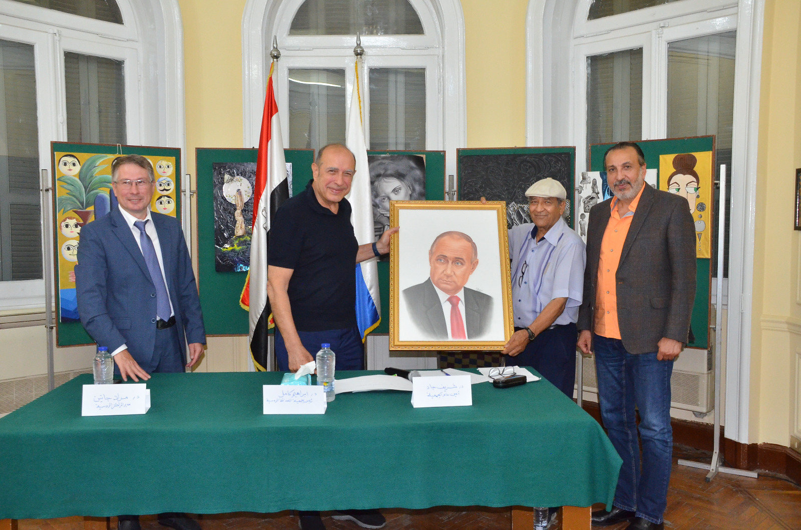 وفي ختام اللقاء وجه دكتور إبراهيم كامل الشكر للأعضاء الذين قدموا مبادرات شديدة الأهمية، وقدم الشكر للدكتور الفنان رأفت عبدالسلام الذى رسم بورتريه للرئيس بوتين، وأكد كامل أن مجلس الإدارة سوف يحرص على دعم هذه المبادرات في إطار تعزيز وتوطيد العلاقات المصرية الروسية.