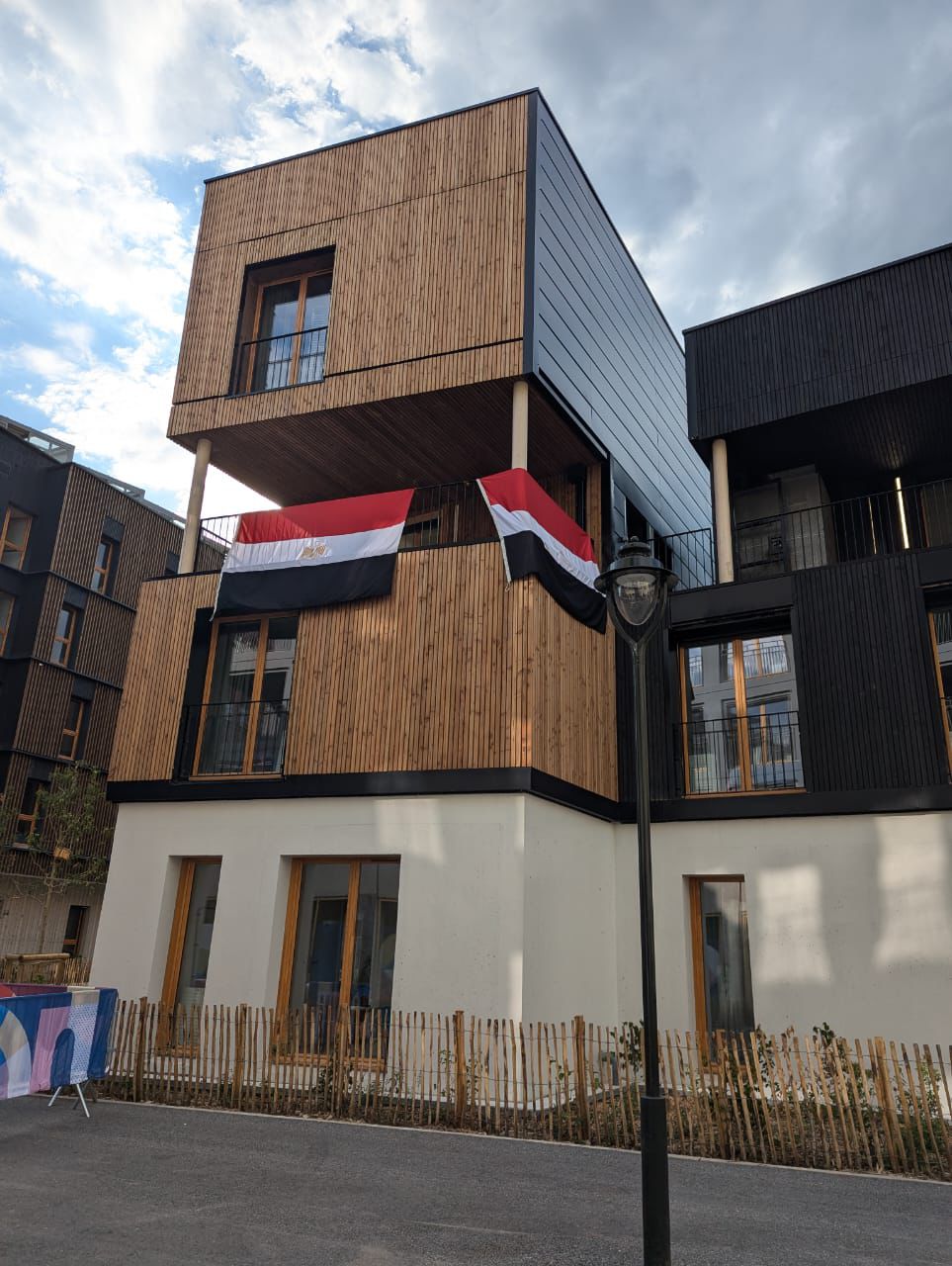 رفع العلم المصري على مبنى مقر البعثة في القرية الأولمبية بباريس
