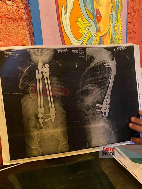 وأوضح الأب: مر الآن عام كامل طرقت فيه جميع أبواب المؤسسات الخيرية والمراكز لاستبدال الجهاز المثبت في العمود الفقري بأخر بتدخل جراحي سريع كي يتماشى مع نموها الطبيعي، لأن الانحناء عاد مرة أخرى لابنتي مع آلام مبرحة وعدم استطاعتها النوم طوال الليل لضغط الجهاز على مؤخرة رأسها وكذلك على رئتيها ولكن الجميع تخلى عني.