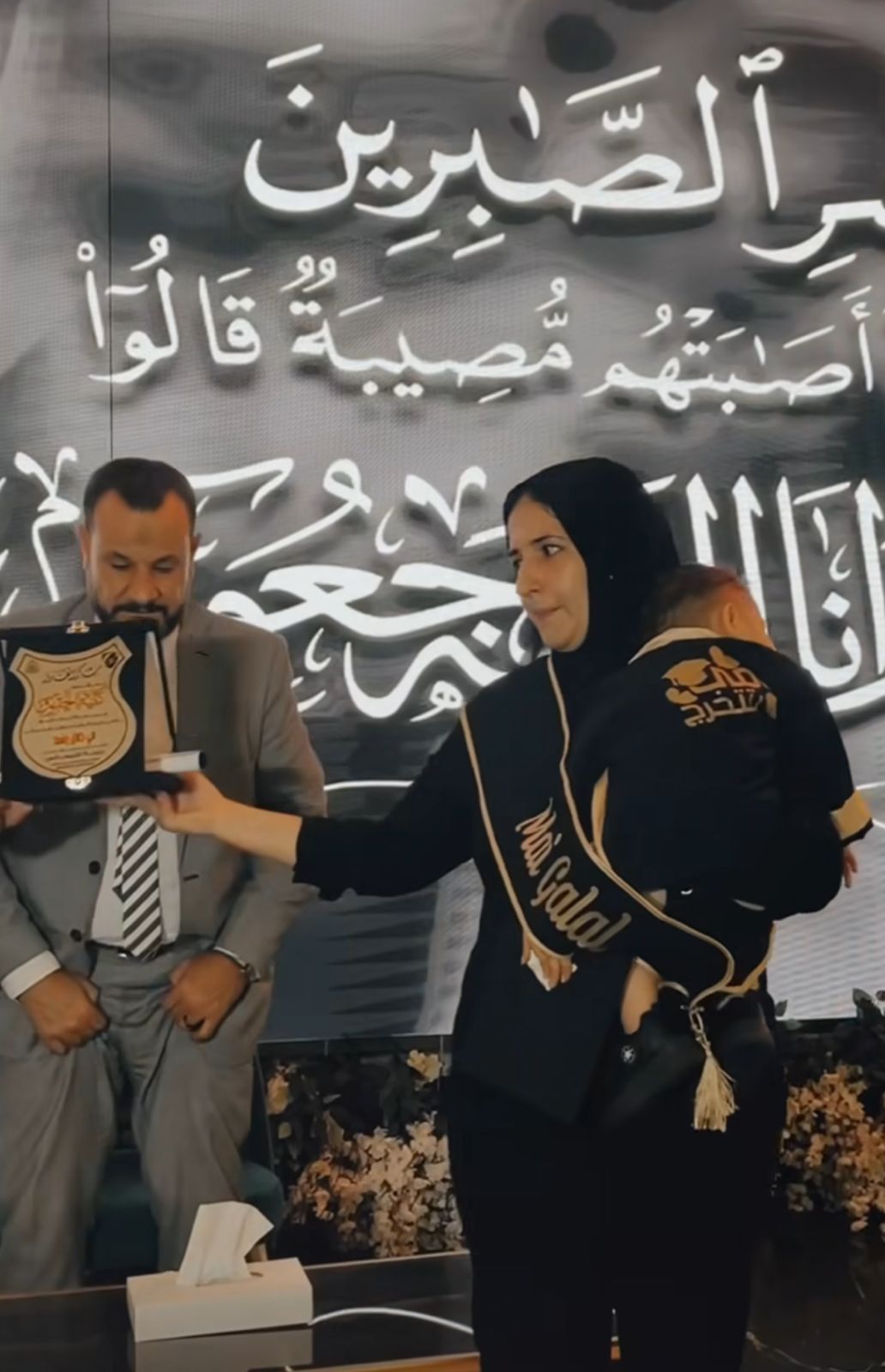 رضيع يتسلم جائزة تكريم والدته بعد وفاتها خلال حفل تخرجها | فيديو