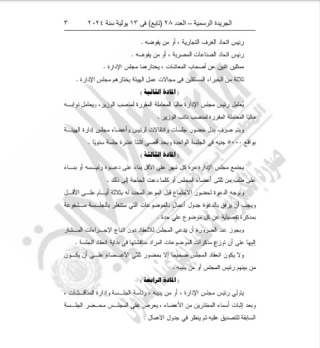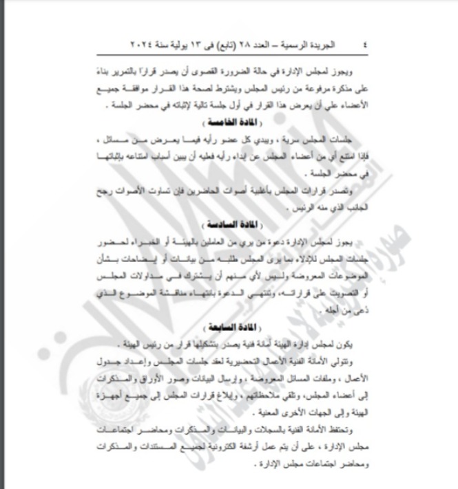 -ثلاثة من الخبراء المستقلين في مجالات عمل الهيئة يختارهم مجلس الإدارة.