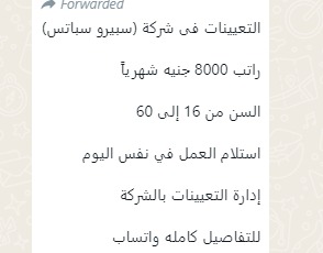 انتشرت على مواقع التواصل الاجتماعي، أخبار عن فرص للتوظيف بشركة سبيروسباتس للمواد الغازية، وعلى من يرغب دفع أموال لتسهيل التوظيف ولزوم التقديم.