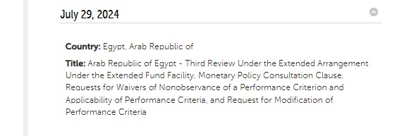 ويأتي ذلك تأكيدًا للقاهرة 24، حيث صرح مصدر مطلع، بأنه لم يتم أي تغيير في موعد إدراج مصر على جدول اجتماعات مجلس إدارة صندوق النقد الدولي، والمحدد بتاريخ 29 يوليو 2024، وذلك لاعتماد المراجعة الثالثة، في إطار الاتفاق المبرم مع الصندوق.