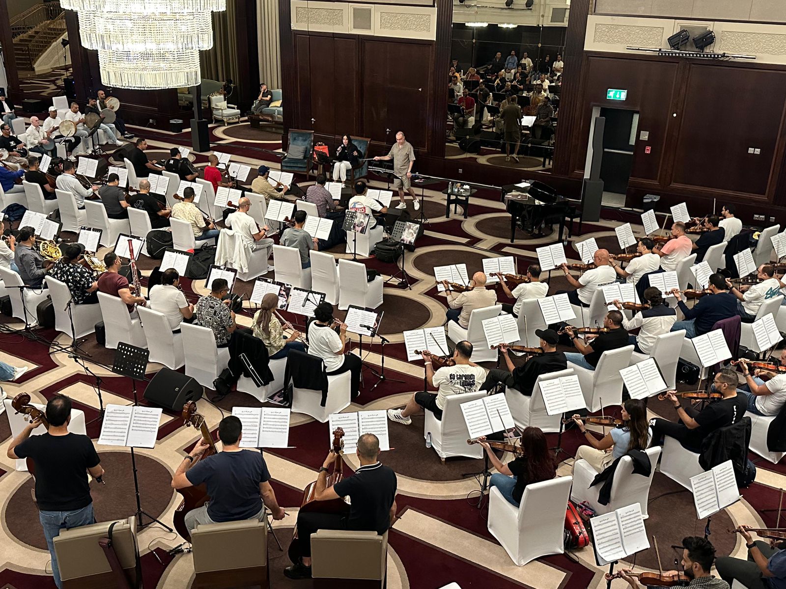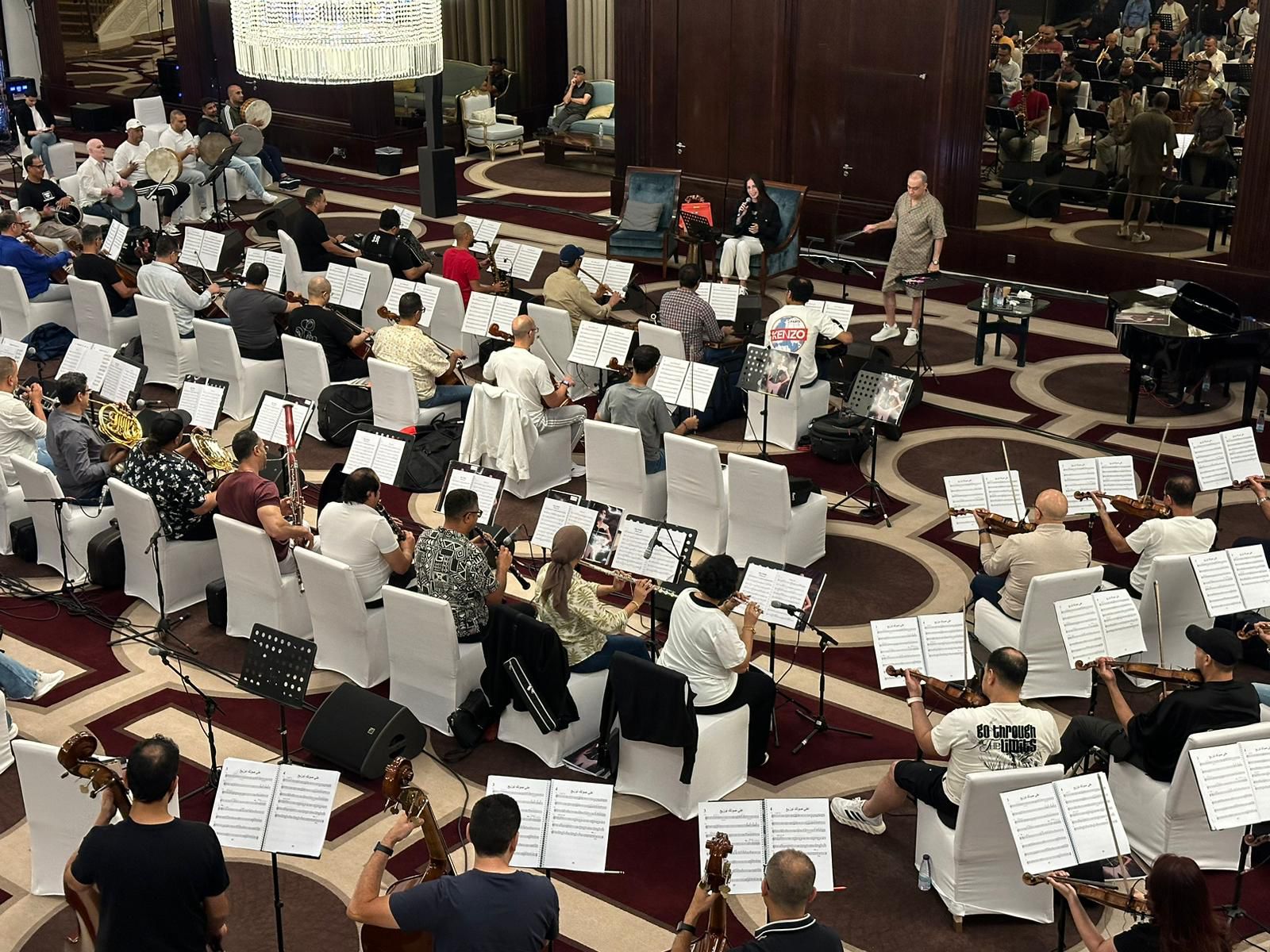 واستمرت هذه التحضيرات لأكثر من 8 ساعات، شاركت فيها الأوركسترا الضخمة التي تضم أكثر من 150 عازفا بقيادة المايسترو وليد فايد، مؤديةً مقطوعات موسيقية منفردة بحرفية عالية قبل أن تصل الفنانة آمال ماهر إلى جدة وتنطلق فورا للمشاركة في البروفة المسائية رفقة الأوركسترا الموسيقية.