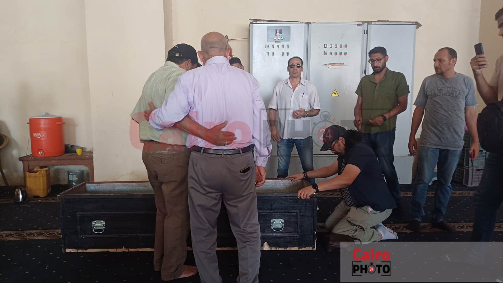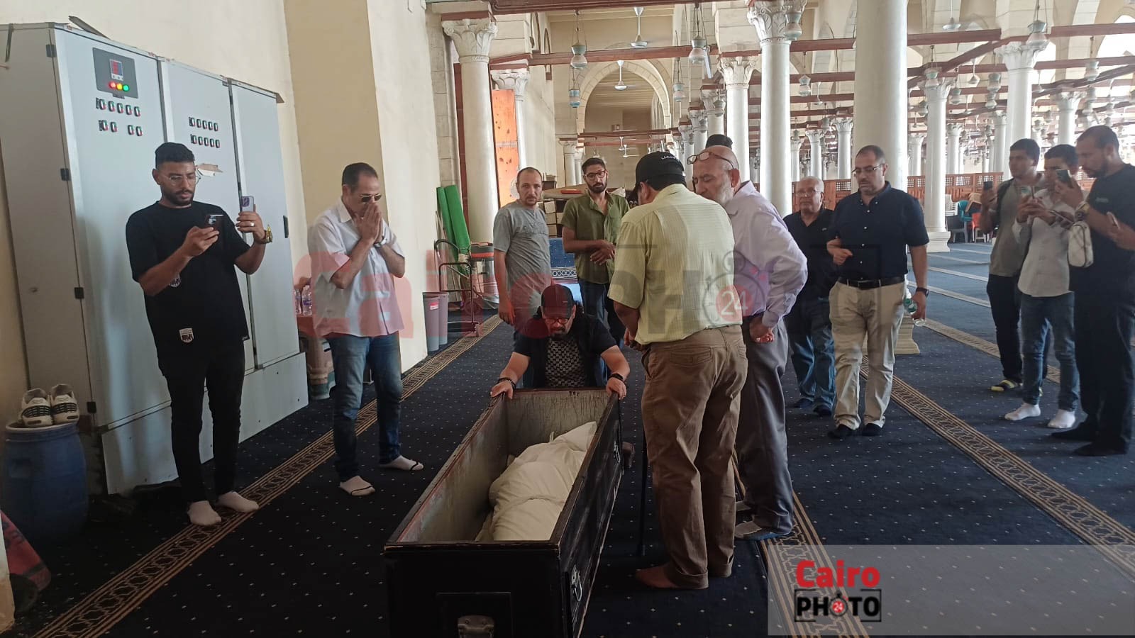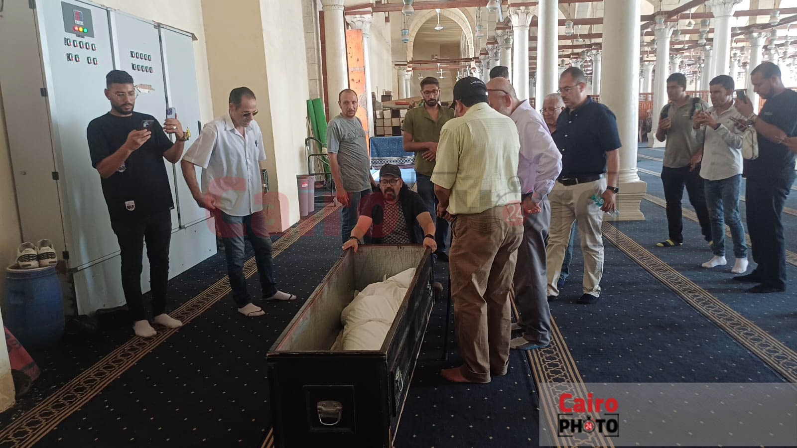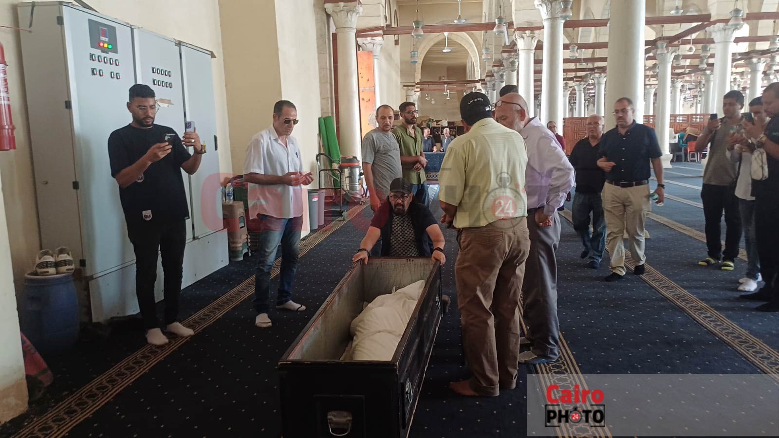 انهيار أسرة الفنان الراحل أحمد فرحات لحظة وصول جثمانه إلى مسجد عمرو بن العاص