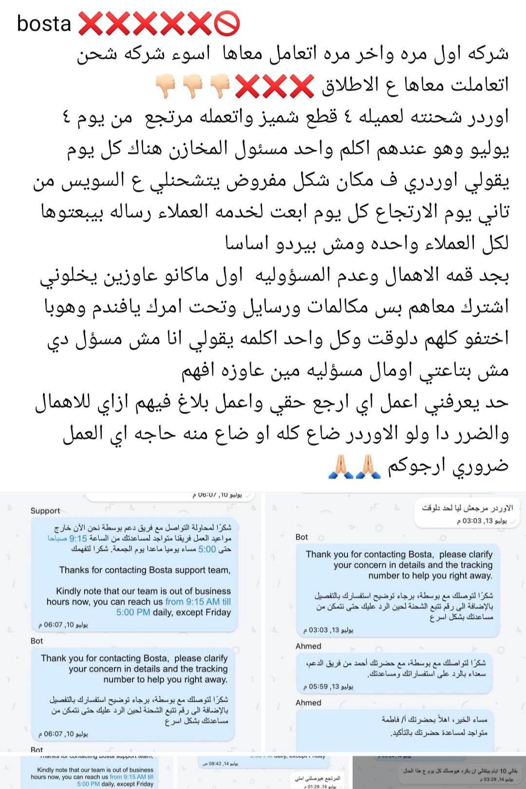 بينما روى شخص آخر تفاصيل تجربته مع bosta بعد 4 سنوات من التعامل الدائم، ليفاجأ بتغير كبير في أدائهم، حيث إن أحد الطلبات تم تبديله وكان من المفترض أن يعود له المندوب بالمرتجع، ولكن بدلا من ذلك أخذ المندوب صور وهمية ليتلاعب بنظام التطبيق ويظهر على أن المرتجع تم استلامه.