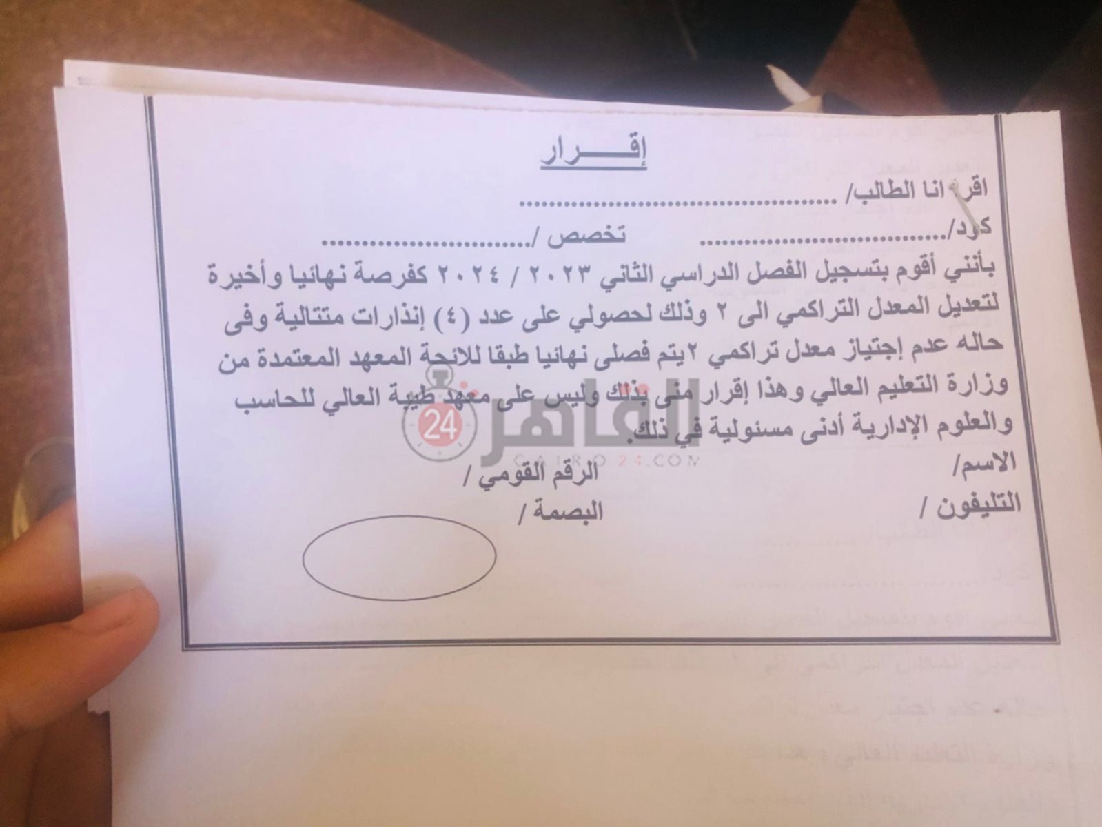 رغم وعودهم.. الإدارة تجبر الطلاب على توقيع إقرار بالمعدل التراكمي بعد شكاواهم