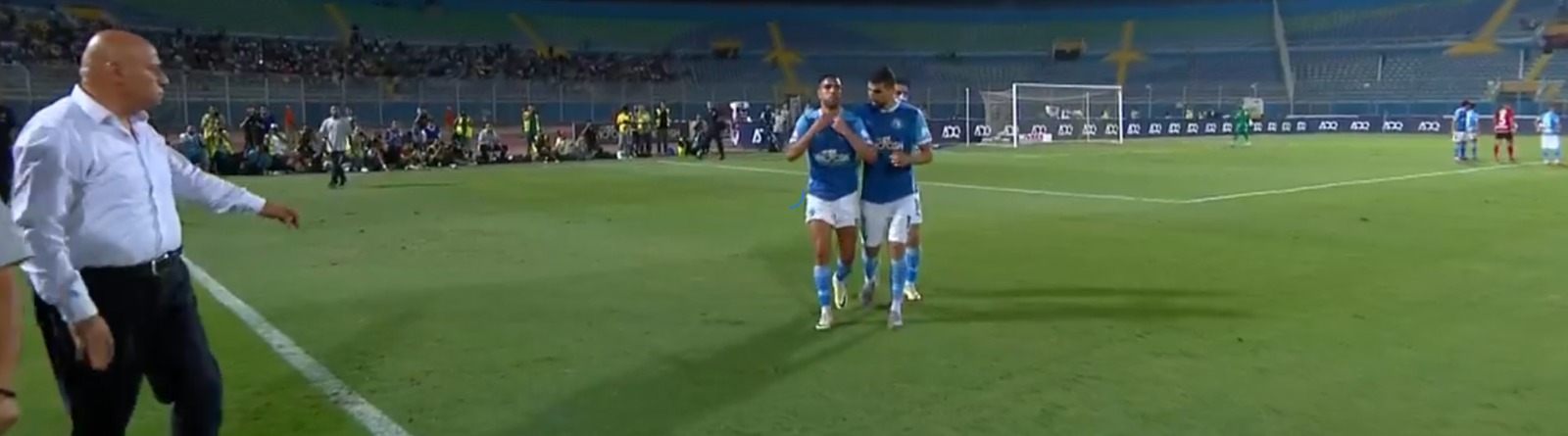 - الشيبي ظهر أمام الشحات وهو يشتكي من صعوبة الإصابة التي تسببت في طرد الشيبي لاحقا.
