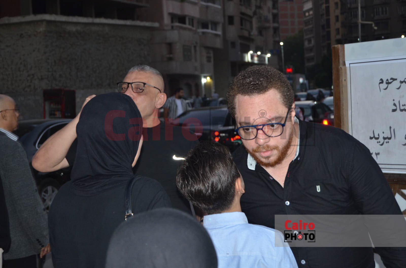 مصطفى كامل وحلمي عبد الباقي أول الحضور في عزاء المايسترو محمد أبو اليزيد بمسجد الحامدية الشاذلية بالمهندسين