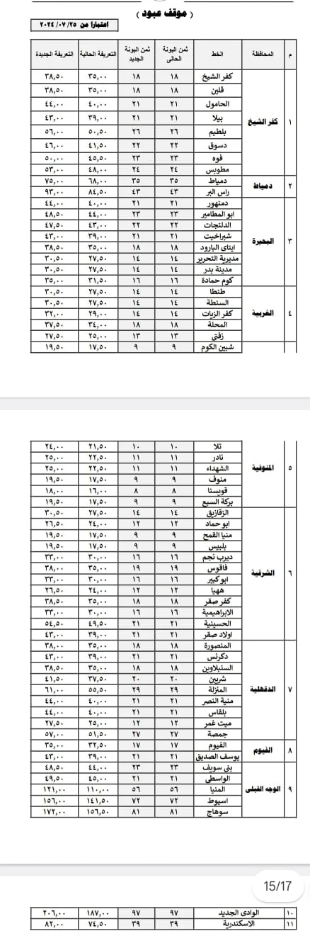 إلى جانب ذلك، أعلنت محافظة الدقهلية قائمة أسعار المواصلات الجديدة والتي نشرتها الصفحة الرسمية للمحافظة بعد قرار المحافظ.