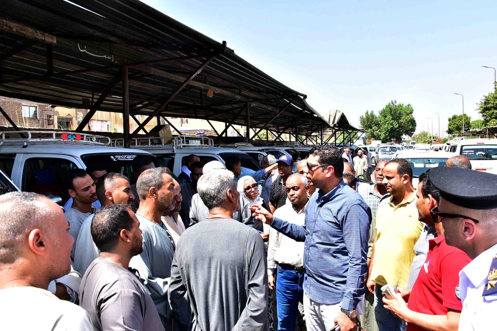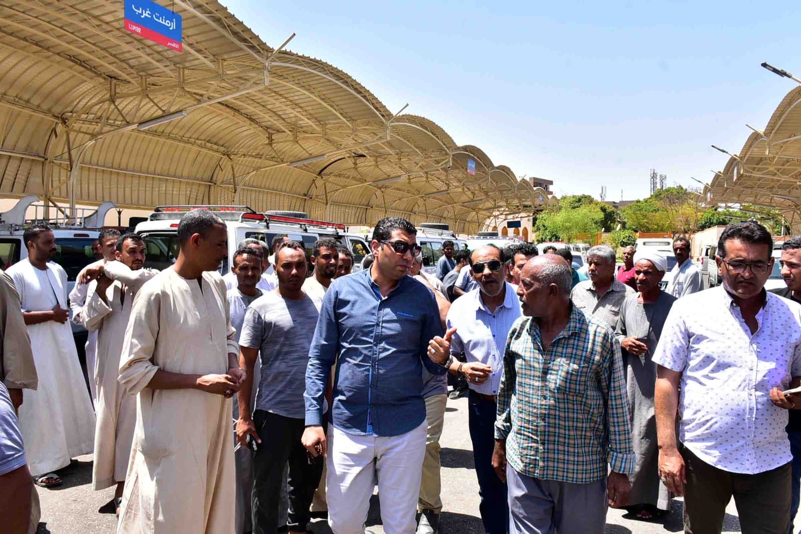 كما توجه لموقف سيارات الحبيل والبغدادي بشرق السكة الحديد، والتقى المواطنين والسائقين، حيث وجه بوضع اللافتات المكتوب بها تعريفة الركوب الجديدة في أماكن واضحة أمام المواطنين، وتعليق التسعيرة الجديدة على سيارات الأجرة قبل نهاية اليوم بجميع المواقف، وتوجه إلى إحدى محطات البنزين والتقى المواطنين والعاملين بها، ثم توجه لمجمع مواقف سيارات الأقاليم بشرق السكة.