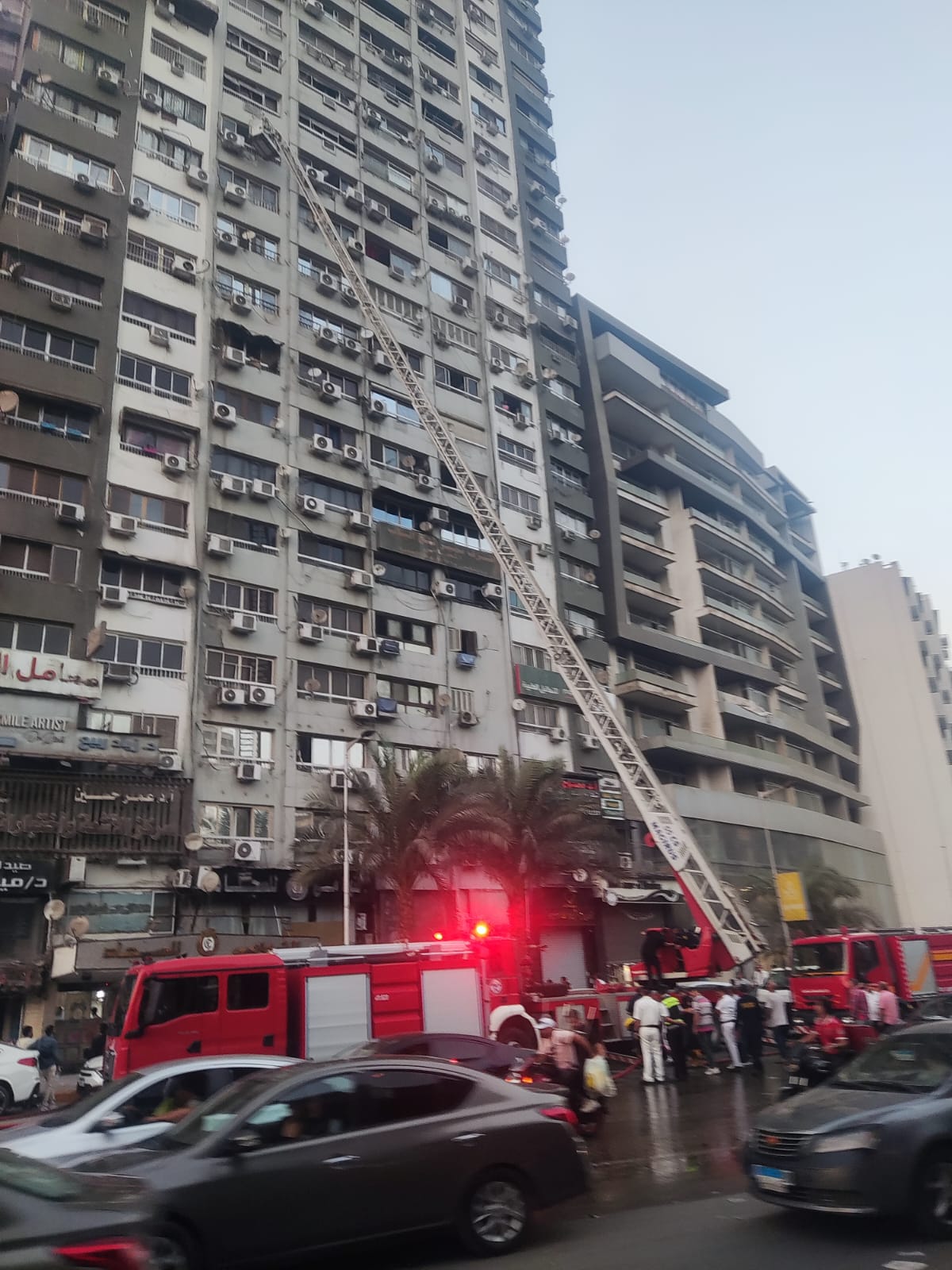 وكشفت المعاينة الأولية أن الحريق نشب في الطابق الـ 13، وأسفر عن إصابة 8 أشخاص بـ اختناق من بينهم 4 من جنسيات عربية، حيث دفعت قوات الحماية المدنية بسياراتين إطفاء وسلم هيدروليكي و5 سيارات إسعاف، وتم فرض كردون أمني حول موقع الحريق لمنع امتداده للأماكن المجاورة.