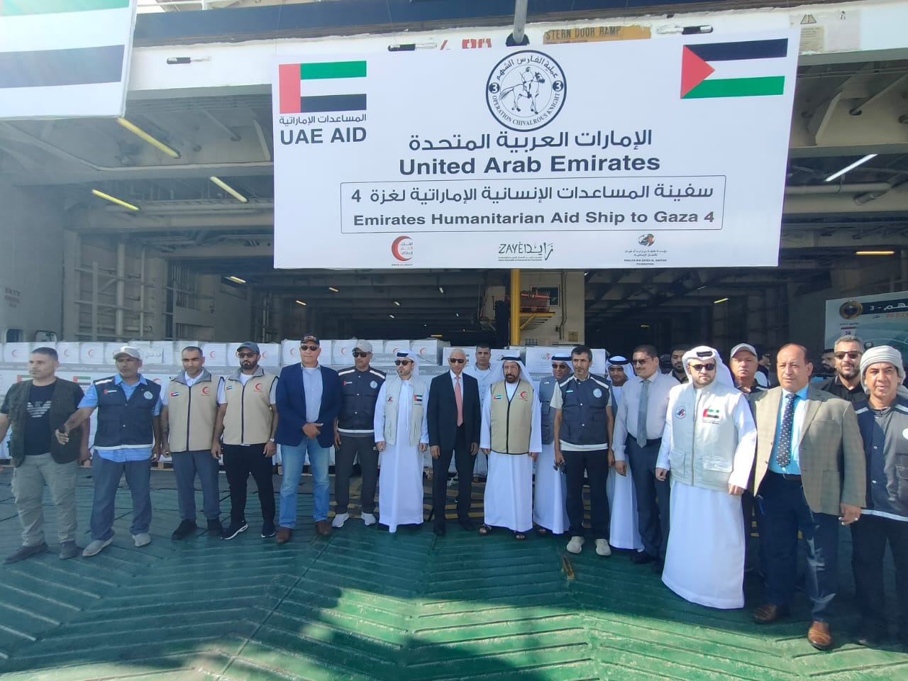 بدوره، أكد راشد المنصوري، أن السفينة الإماراتية أبحرت من ميناء الفجيرة قبل أسبوعين وهي تعد الرابعة التي تصل ميناء العريش البحري، وتحمل على متنها 5340 طنا من المواد الإنسانية، ضمن عملية الفارس الشهم 3، لدعم الشعب الفلسطيني الشقيق في القطاع.