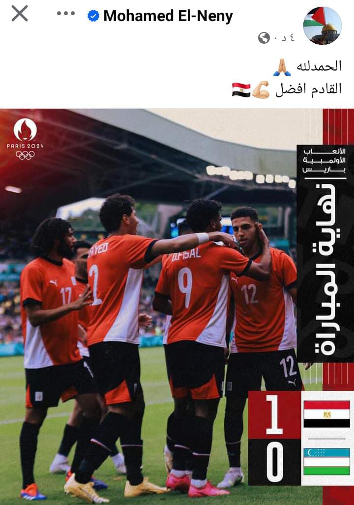 علّق محمد النني قائد منتخب مصر الأولمبي على فوز الفراعنة على حساب منتخب أوزبكستان بهدف دون رد في أولمبياد باريس.