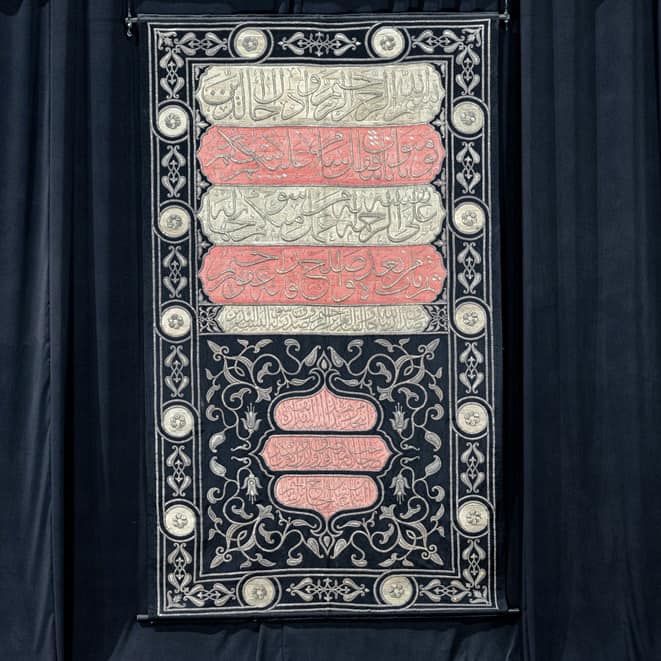 ونشرت إدارة المتحف القومي للحضارة المصرية بالفسطاط، عبر صفحتها الرسمية صورة للقطعة الأثرية معلقة عليها: يزخرف الستارة من الداخل آيات من سورتي البقرة والأنعام، والقطعة تعود إلى 1359 هجريًا / 1940 م.