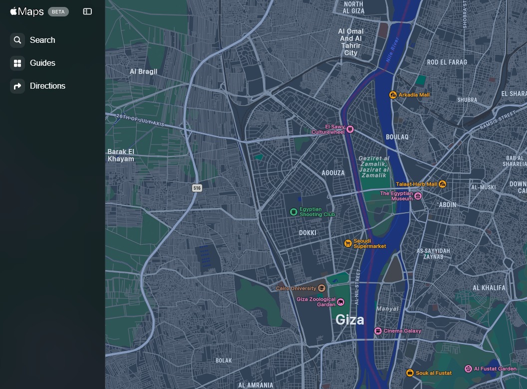 ويتوفر تطبيق الخرائط على الويب حاليًا باللغة الإنجليزية، وهو متوافق مع Safari وChrome على أجهزة Mac وiPad، بالإضافة إلى Chrome وEdge على أجهزة الكمبيوتر التي تعمل بنظام Windows، وسيتم توسيع الدعم للغات والمتصفحات والأنظمة الأساسية الإضافية بمرور الوقت.
