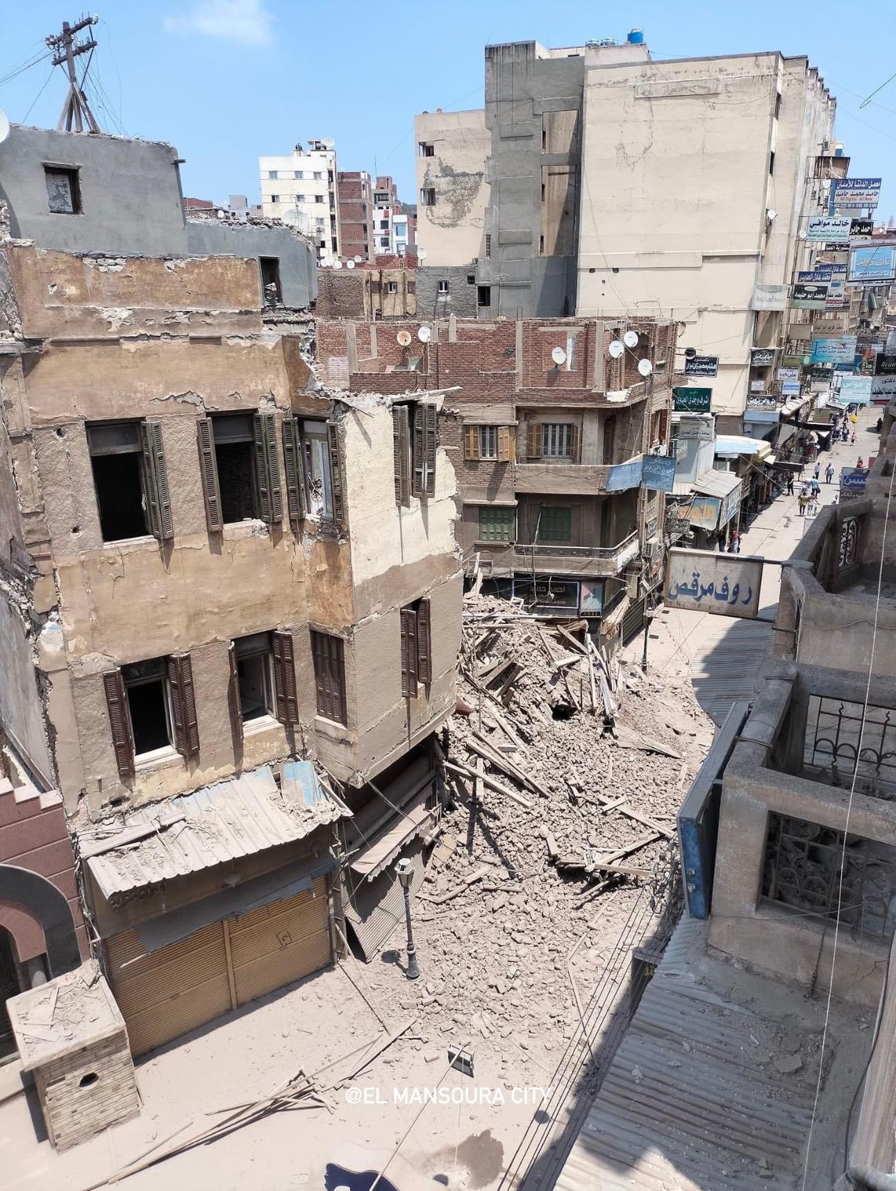 شهدت منطقة السكة الجديدة التابعة لمدينة المنصورة في محافظة الدقهلية، انهيار منزل مهجور مكون من 3 طوابق.