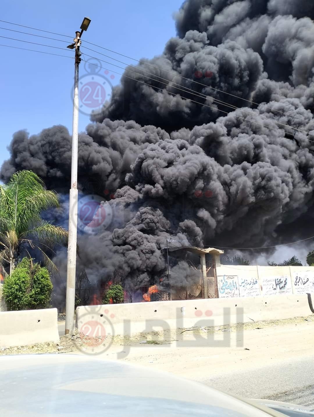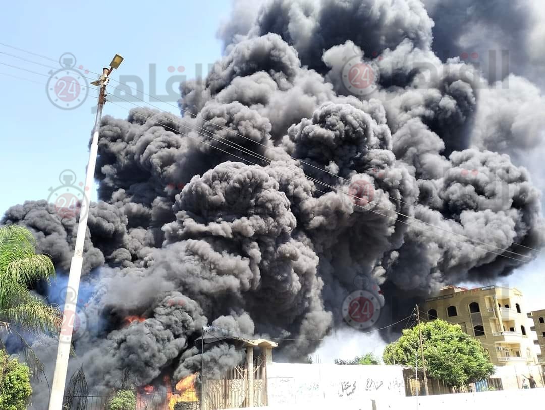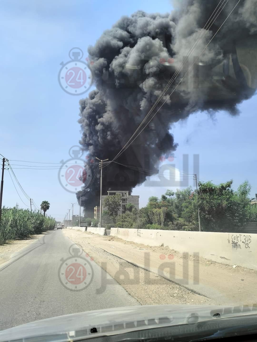 الدخان واصل للسما.. حريق على طريق الفرعونية سنتريس بالمنوفية | صور