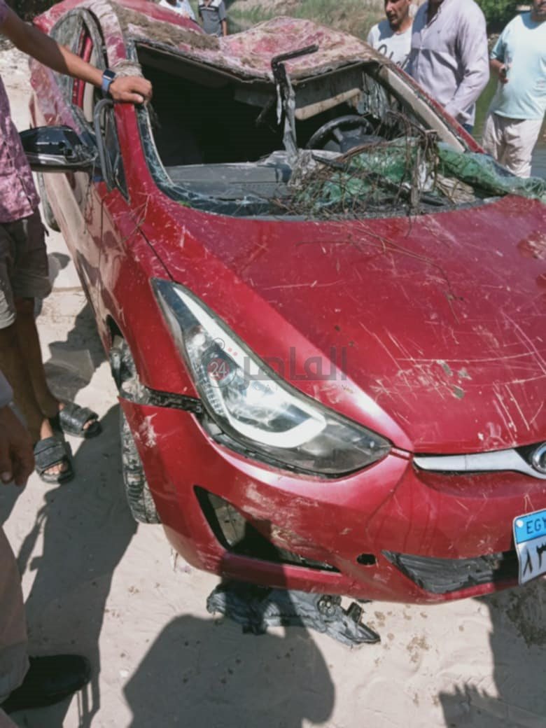 العربية اتطبقت.. ننشر صور حادث مصرع زوجين في انقلاب سيارة بترعة الإسماعيلية