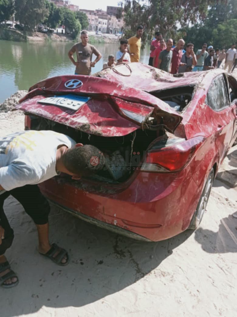 الصور الأولى لحادث مصرع زوجين في انقلاب سيارة ملاكي بترعة الإسماعيلية