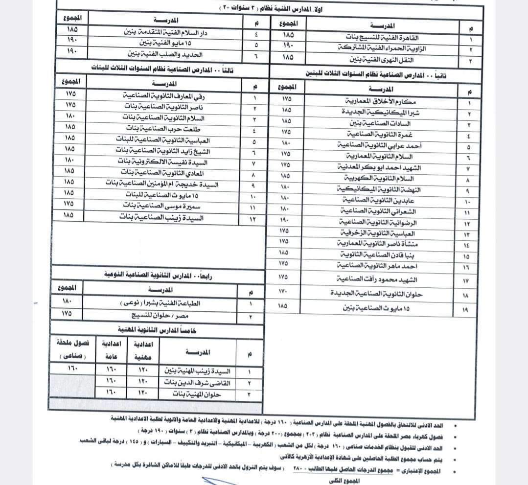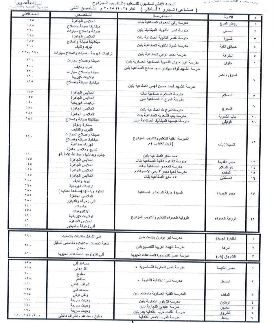 وقرر المحافظ النزول بالحد الأدنى للقبول بعدد من مدارس التعليم الصناعي والتجاري والفندقي بالمرحلة الثانية، وذلك لتلبية رغبات أولياء الأمور الذين كانوا يلتمسون تخفيض درجات تنسيق القبول بمدارس الثانوي العام والفني للعام الدراسي الجديد.