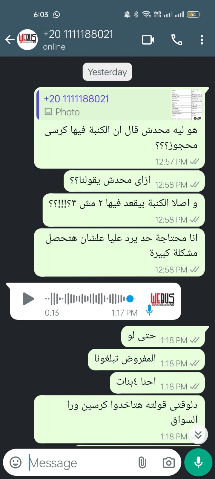 شكاوى ضد شركة WE Bus
