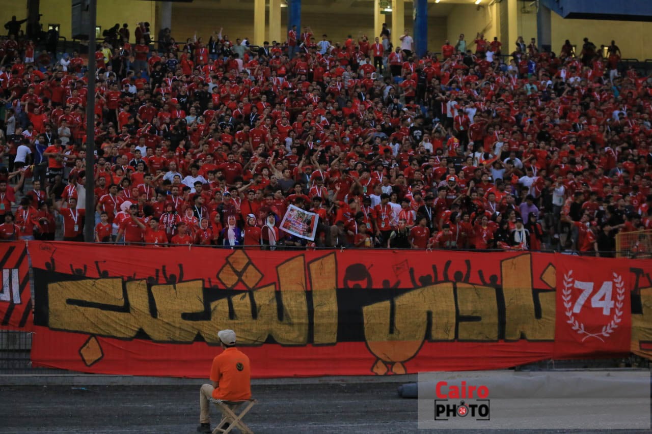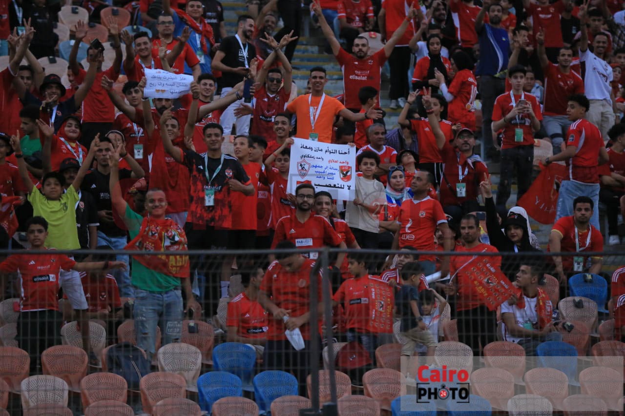 جمهور الأهلي يهز مدرجات ستاد القاهرة قبل مواجهة البنك