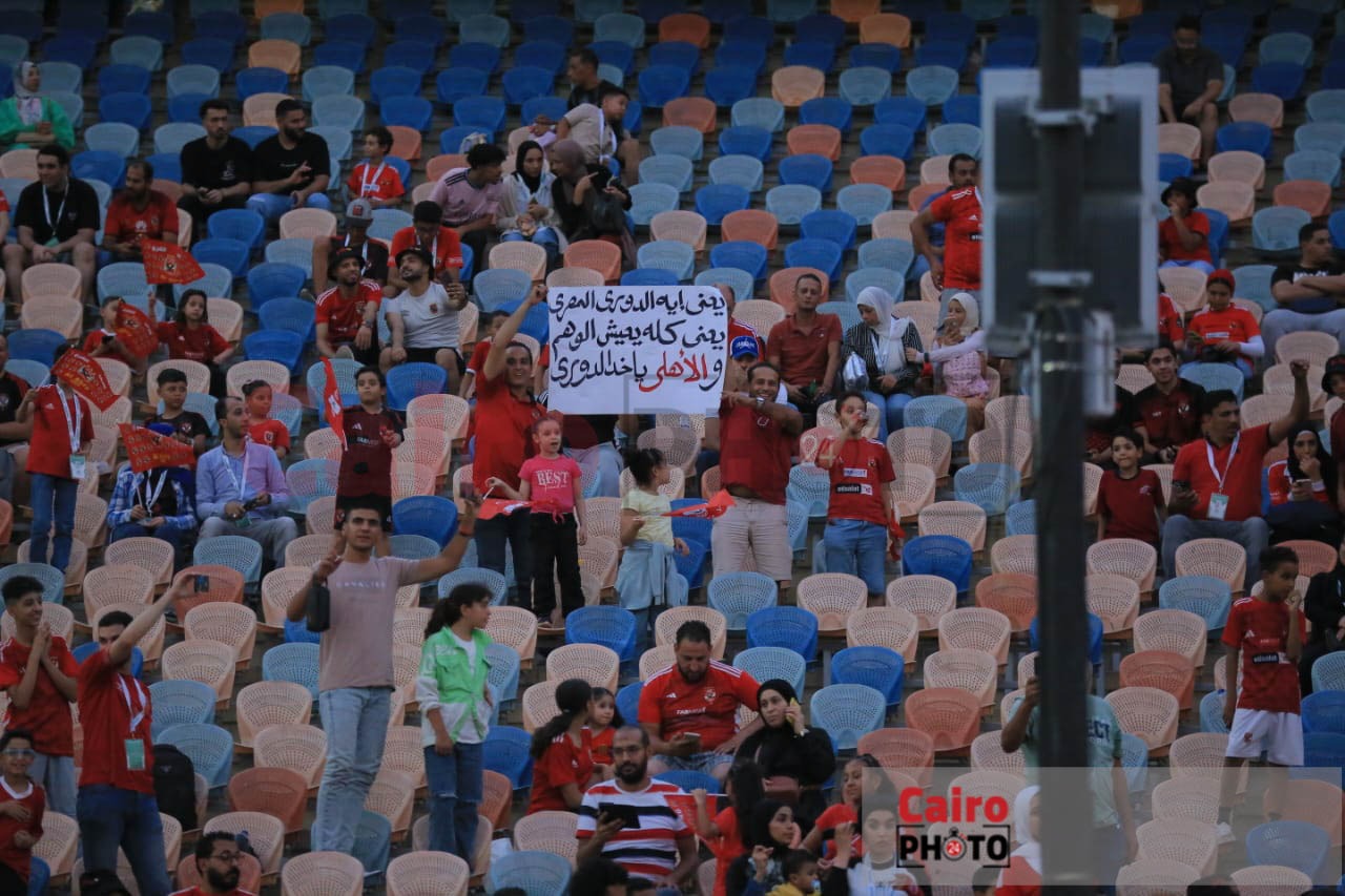 وحرصت جماهير الأهلي على الهتاف للاعبي الفريق، لبث الحماس قبل المواجهة الهامة للفريق في مشواره لحصد لقب الدوري الممتاز رقم 44 في تاريخ القلعة الحمراء.