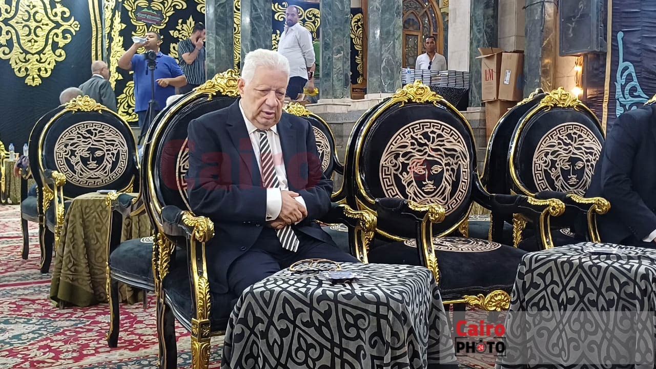 وصول مرتضى منصور لتلقي عزاء شقيقته بمسجد عمر مكرم