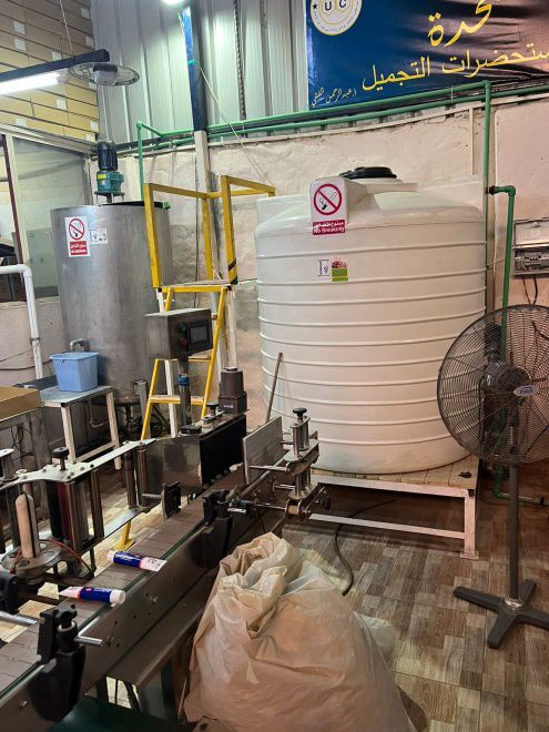 وعثر بداخل المصنع على طن مادة خام “جيل 1164 عبوة معجون صابون مركز، 1700 عبوة جيل أشعة سونار، 1.8 طن مادة خام لإنتاج المنظفات والجيل، 2 تنك بلاستيك مملوء بالماء، وأدوات ومعدات التصنيع، وكميات كبيرة من العبوات الفارغة”.