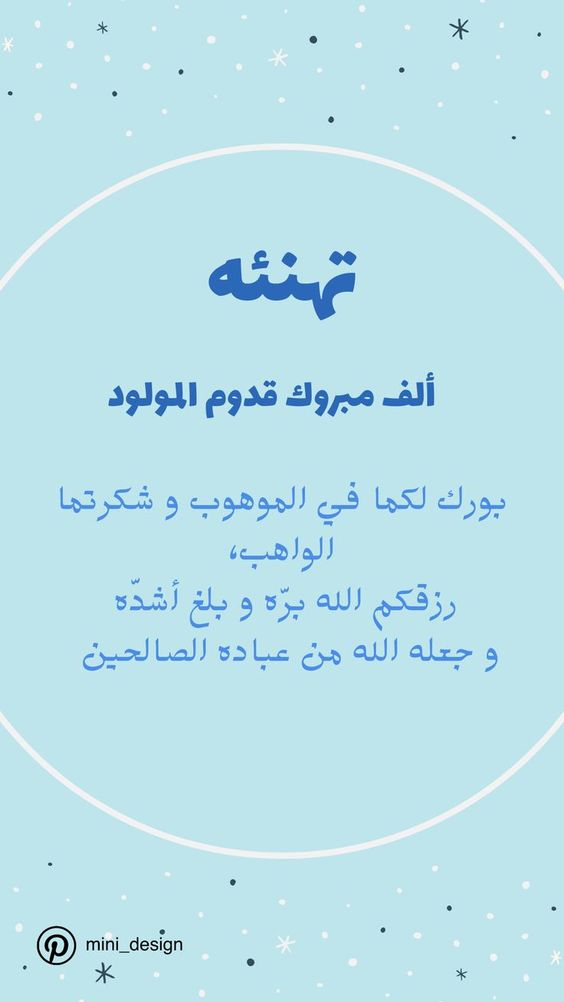 - رزقكم الله بمولود جميل، بارك الله فيه وجعله نورًا لحياتكم.