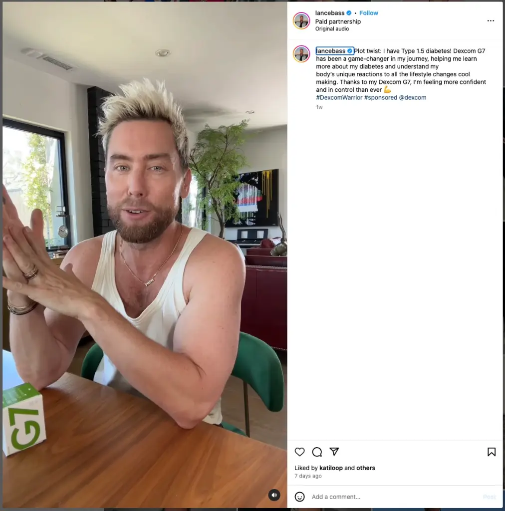 خلال حسابه الشخصي بانستجرام، قال لانس باس، اكتشفت مؤخرًا أنني تعرضت لتشخيص خاطئ، أنا في الواقع مصابة بالنوع 1.5، المعروف أيضًا باسم LADA، أو مرض السكري المناعي الذاتي الكامن لدى البالغين.