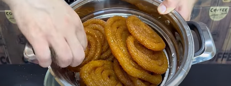 - لا بد من وضع المشبك المقلي في الشربات الثقيل البارد ولكنه شربات ثقيل بقوام أقل من ثقل شربات المشبك الدمياطي.