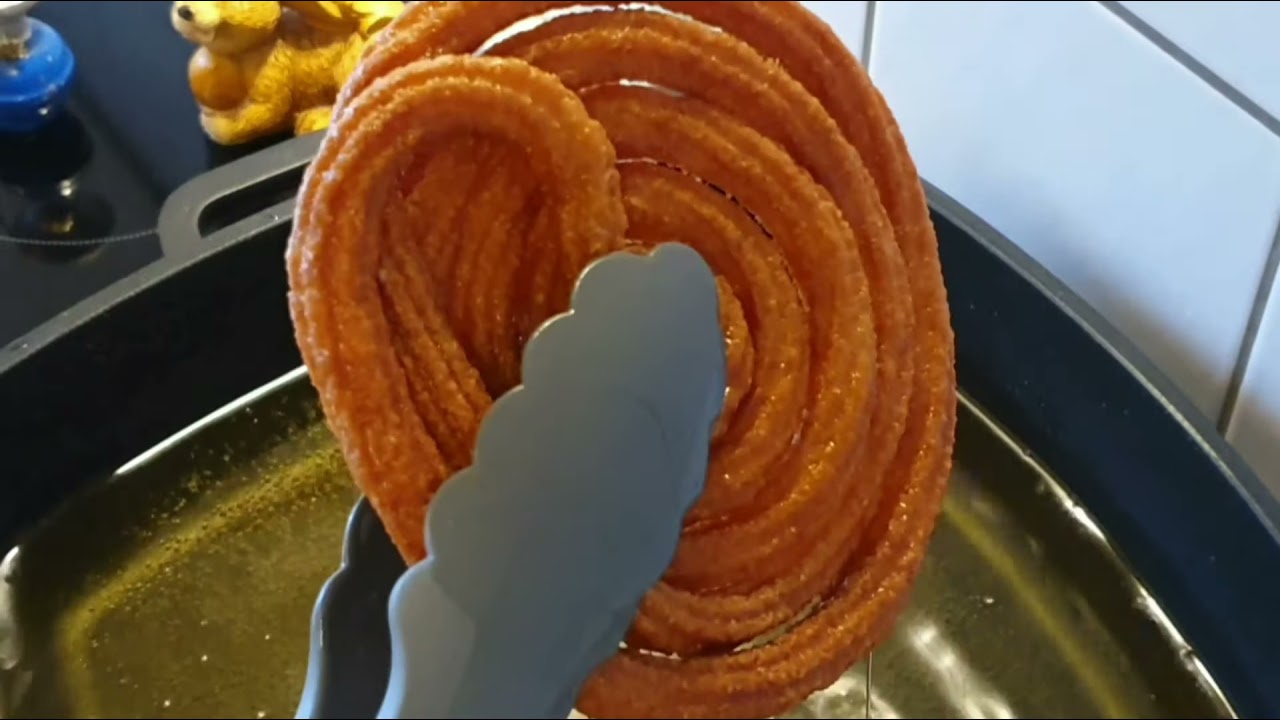 - اتركي المشبك السوري في الزيت حتى يتماسك ثم اقلبيه على الجهة الأخرى واتركيه ينضج.