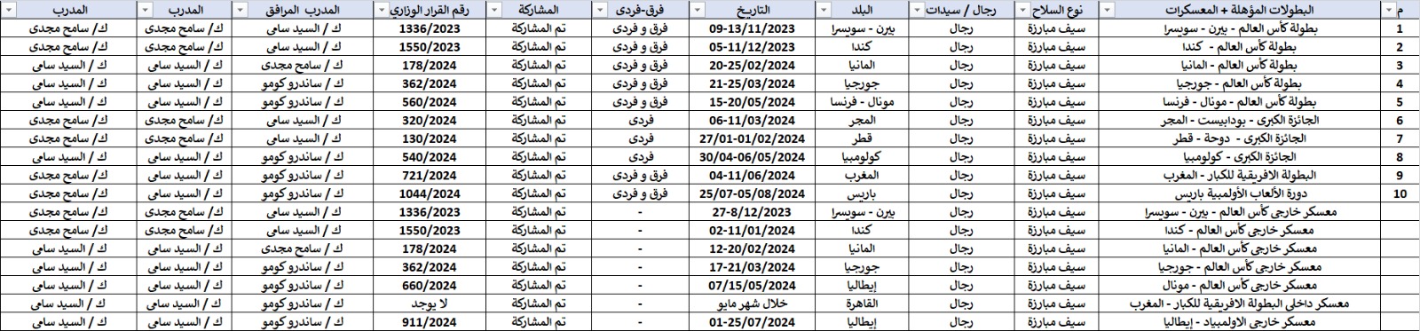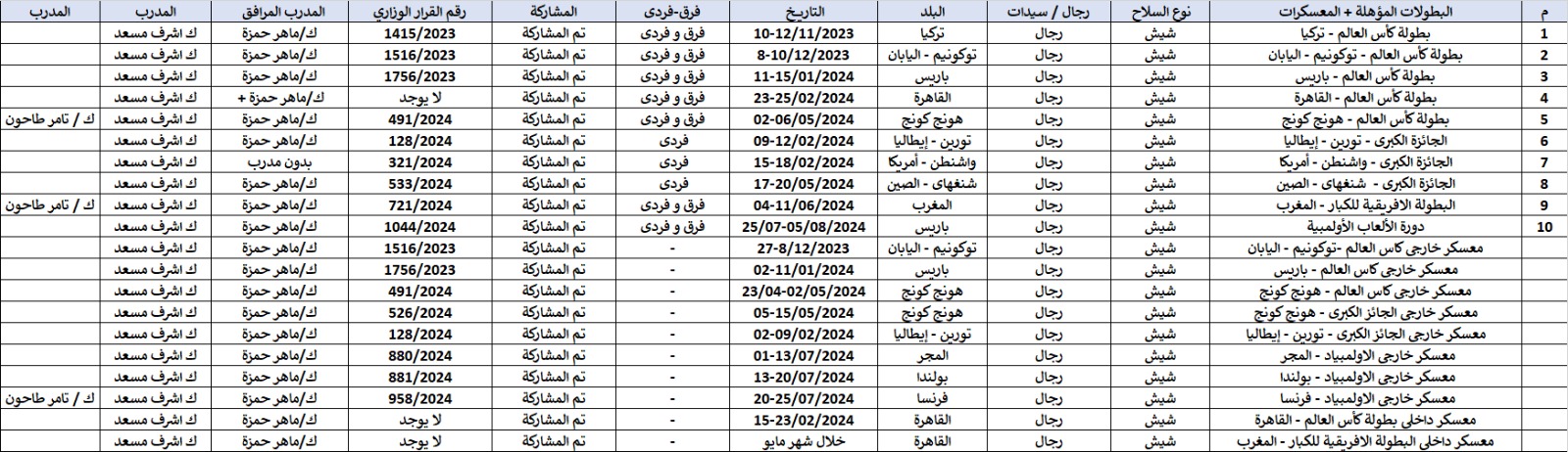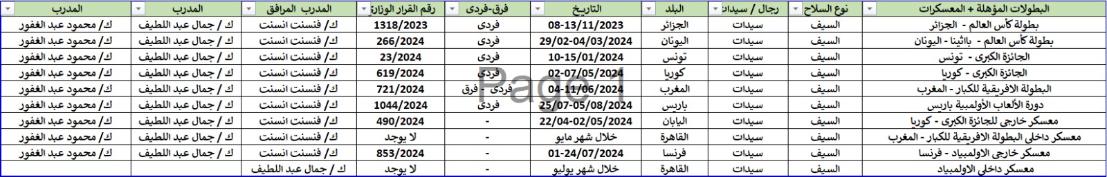 وأكد الاتحاد أن مدرب منتخب سلاح الشيش للسيدات هو ماهر حمزة مدرب الرجال، وكان يرافقه المدرب أشرف مسعد، ولكن اللاعبات المقيمات خارج مصر لم تتدرب مع المنتخب المصري طوال الوقت.