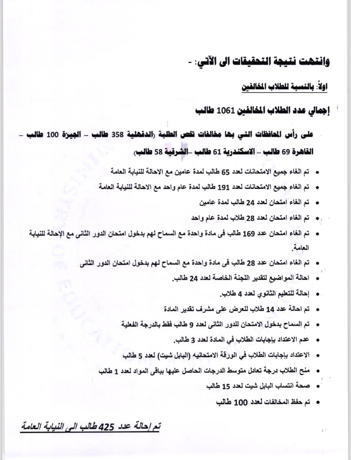 1000 طالب مخالف.. التعليم تعلن حجم قضايا وشكاوى الثانوية العامة 2024