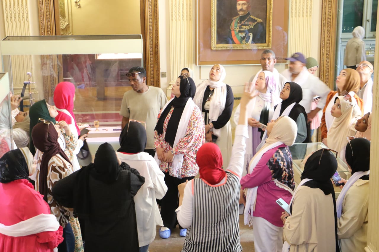 كما تعرف الفتيات خلال الجولة على تاريخ اللوحات الموجودة بالأسقف، واللوحات الزيتية المرسومة لكل من الخديوي توفيق، والأميرة فاطمة إسماعيل، والملك فؤاد وغيرها من شخصيات الأسرة الحاكمة.
