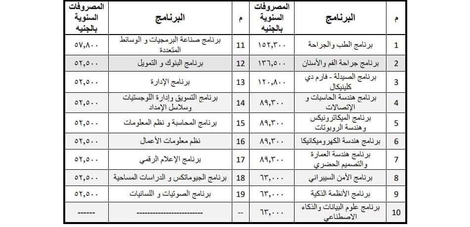 - هندسة الحاسب: 75،000 ألف جنيه.