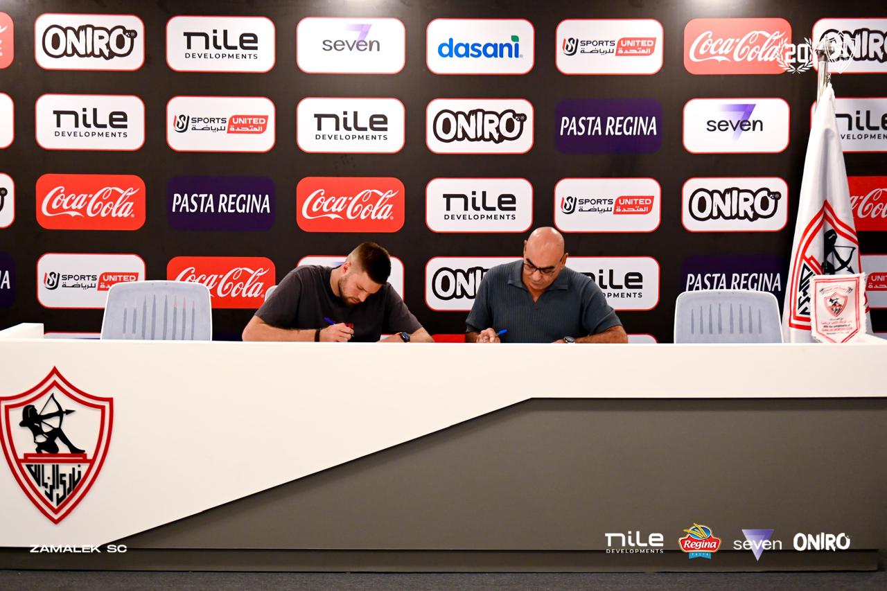 ووقع المحترف الروسي على عقود انضمامه للزمالك، عقب الجلسة التي جمعته مع هشام نصر نائب رئيس النادي، ورامي نصوحي عضو مجلس الإدارة.