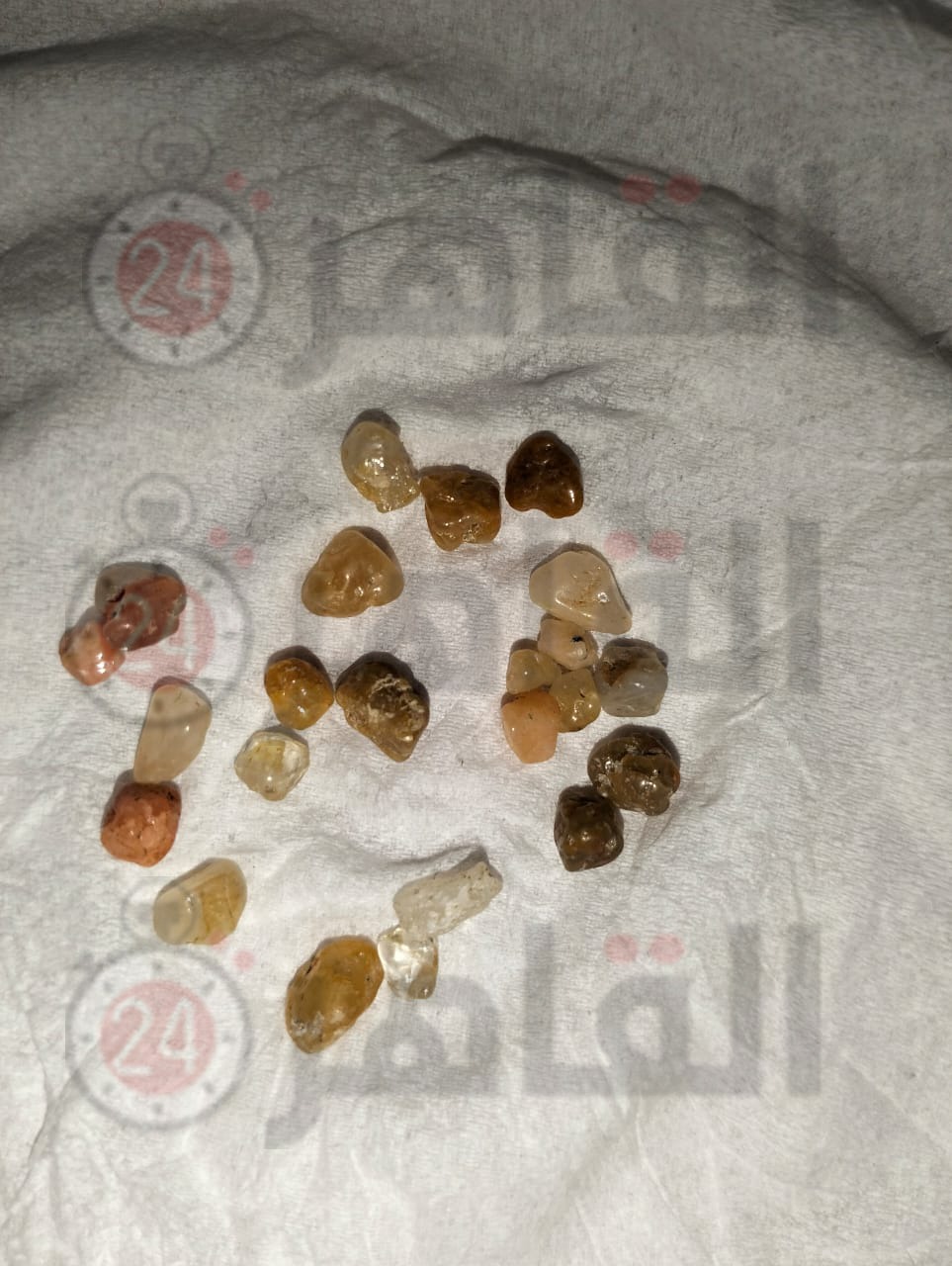وأضافت والدة الصغير في تصريحات خاصة لـ القاهرة 24، أن ابنها بعد ذلك أصيب بألم على إثره توجهت به مرة أخرى إلى الطبيب، وتمكن من استخراج 25 كرستالة بألوان وأحجام مختلفة.