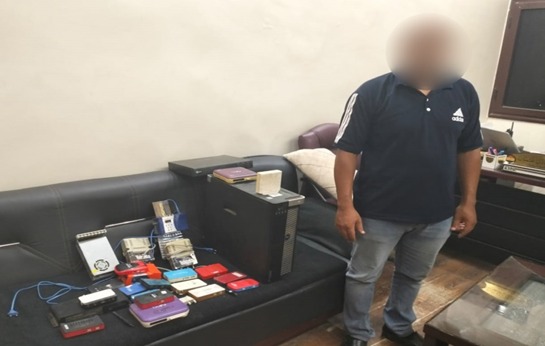 وعثر على عدد من الأجهزة والأدوات والمستلزمات المستخدمة في استقبال الإشارة ومعالجتها وإعادة تشفيرها وبثها بصورة لاسلكية – محل لبيع مستلزمات كسر شفرة القنوات الفضائية - محطة لتقوية إشارة البث اللاسلكي.