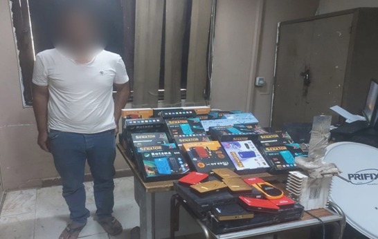 كما تمكنت من ضبط مالك شبكة بث تلفزيونية مقيم بدائرة مركز شرطة بنها لإنشائه وإدارته محطة بث تلفزيونية لاسلكية يقوم من خلالها باستقبال العديد من القنوات الفضائية المشفرة وغير المشفرة وإعادة بثها بدون تصريح من الجهات المختصة، وعثر على عدد من الأجهزة والأدوات والمستلزمات المستخدمة في استقبال الإشارة ومعالجتها وإعادة تشفيرها وبثها بصورة لاسلكية – وحدة معالجة مركزية – هاتف محمول يستخدم في إدارة الشبكة والتواصل مع العملاء محطة لتقوية إشارة البث اللاسلكي.