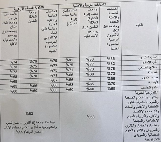 الحد الأدنى للقبول بكليات جامعة الجلالة الأهلية