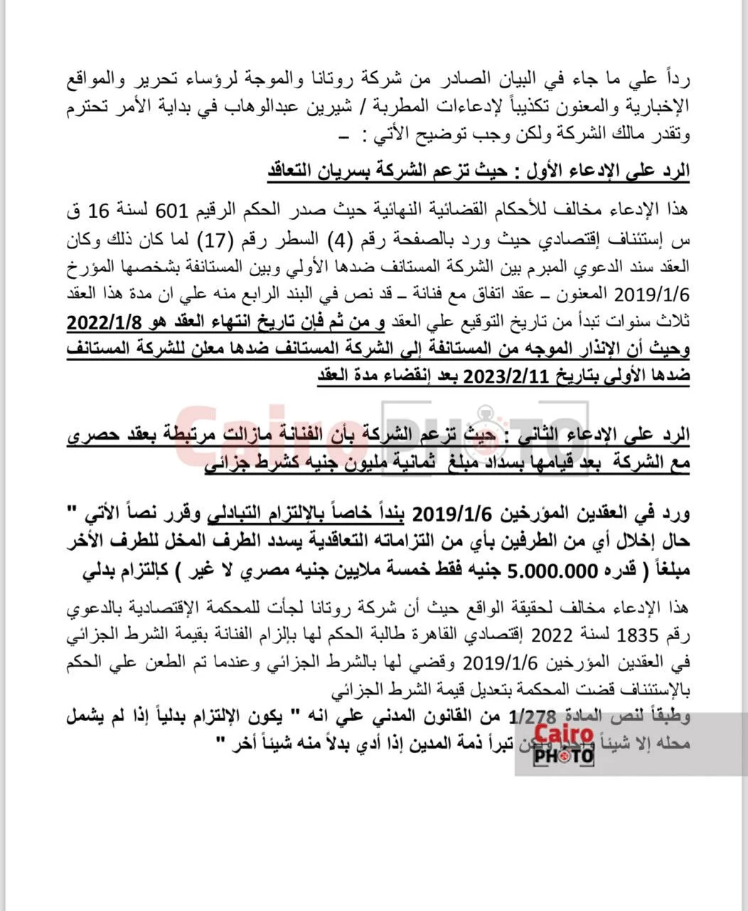 - زعم روتانا باستمرار ارتباط شيرين بعقد حصري معها غير صحيح