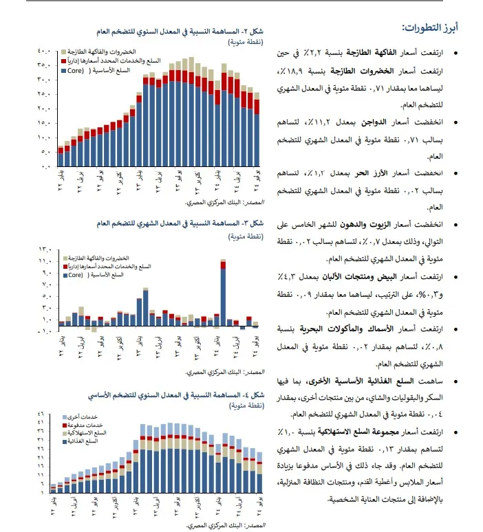 كما شهد المعدل السنوي للتضخم الأساسي تباطؤا في يوليو 2024 ليسجل %24٫4 مقابل 26،6% في يونيو 2024، وهو أدنى معدل له منذ ديسمبر 2022.