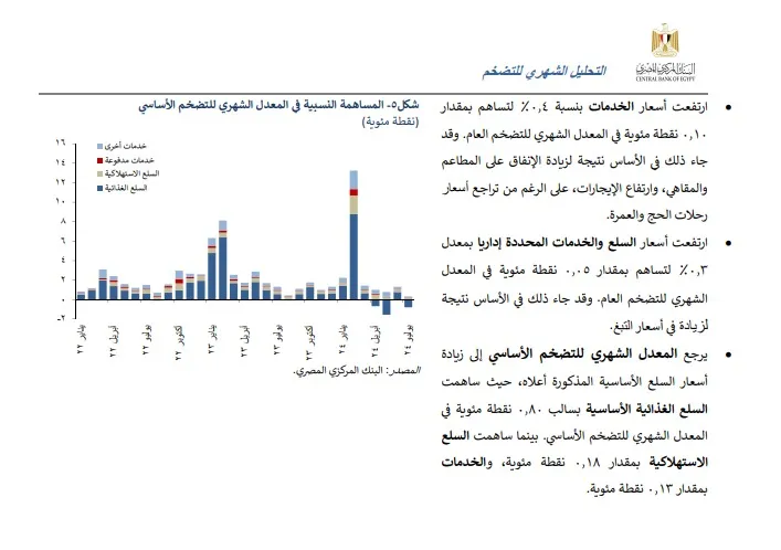 البنك المركزي يكشف أسباب تراجع معدل التضخم للشهر الخامس على التوالي