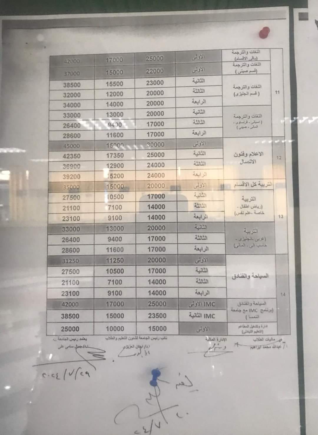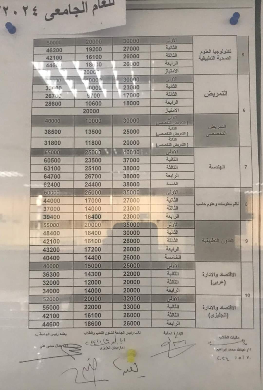 - يكون هناك زيادة سنوية 10% بالنسبة للطلاب الجدد