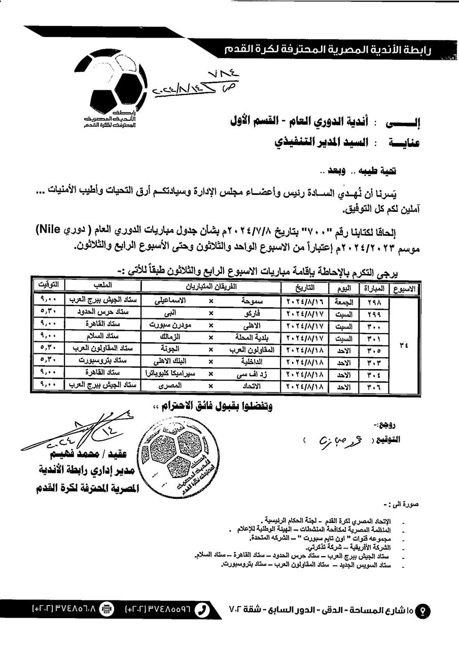 وفي وقت سابق، قرر اتحاد الكرة ولجنة المسابقات نقل مباراة الزمالك وطلائع الجيش ضمن مواجهات دور الـ16 لكأس مصر إلى ستاد السلام بدلًا من ستاد القاهرة الدولي، في اللقاء المقرر له يوم 21 أغسطس من الشهر الجاري.