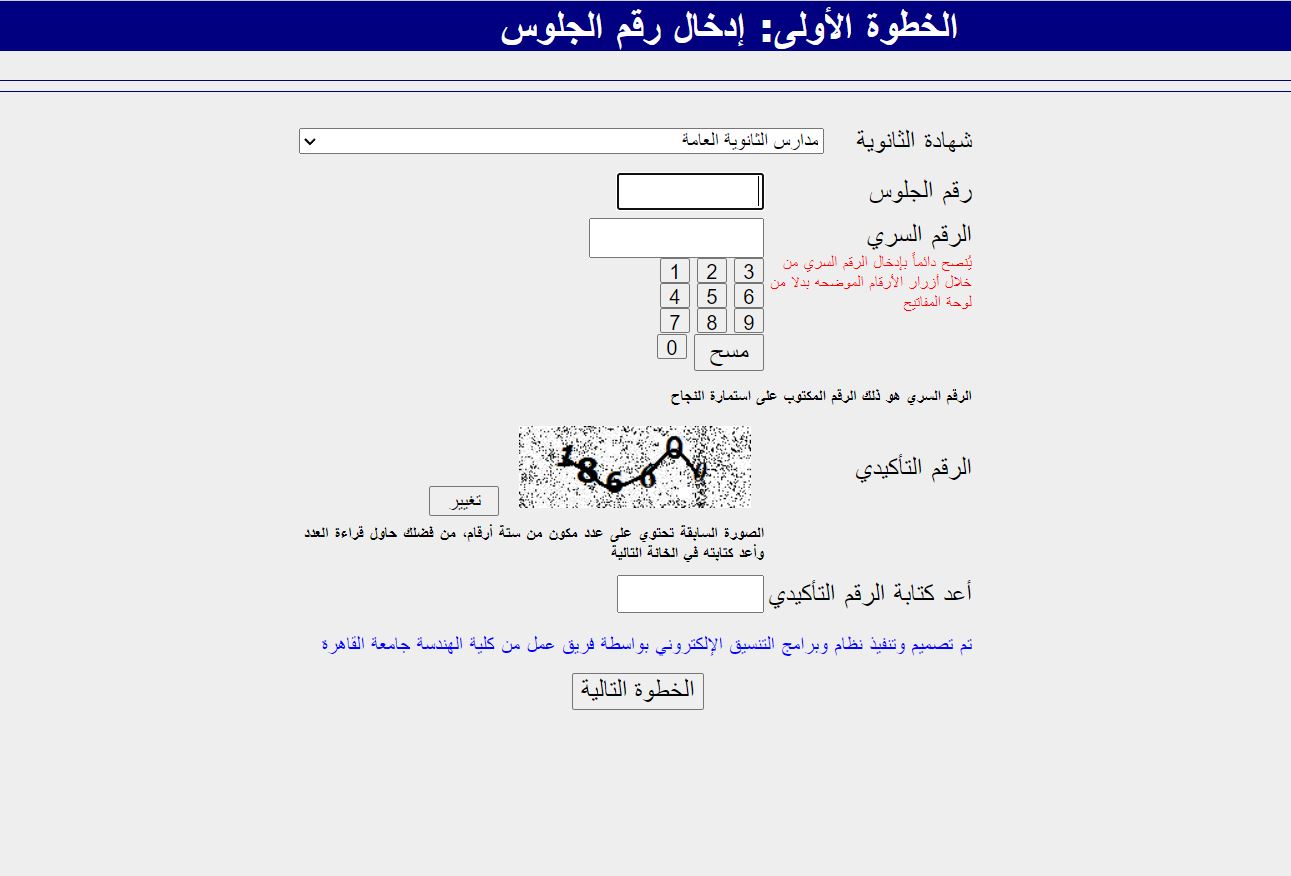 - تظهر صفحة جديدة تدخل في بعض البيانات مثل رقم الجلوس – الرقم السري- الرقم التأكيدي- إعادة كتابة الرقم التأكيدي.